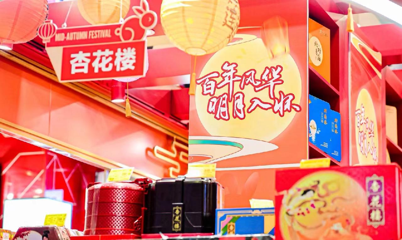 而在周围商圈,杏花楼、王宝和等老字号也纷纷上新月饼新口味、新礼盒,让迎中秋的气氛又更浓了。
