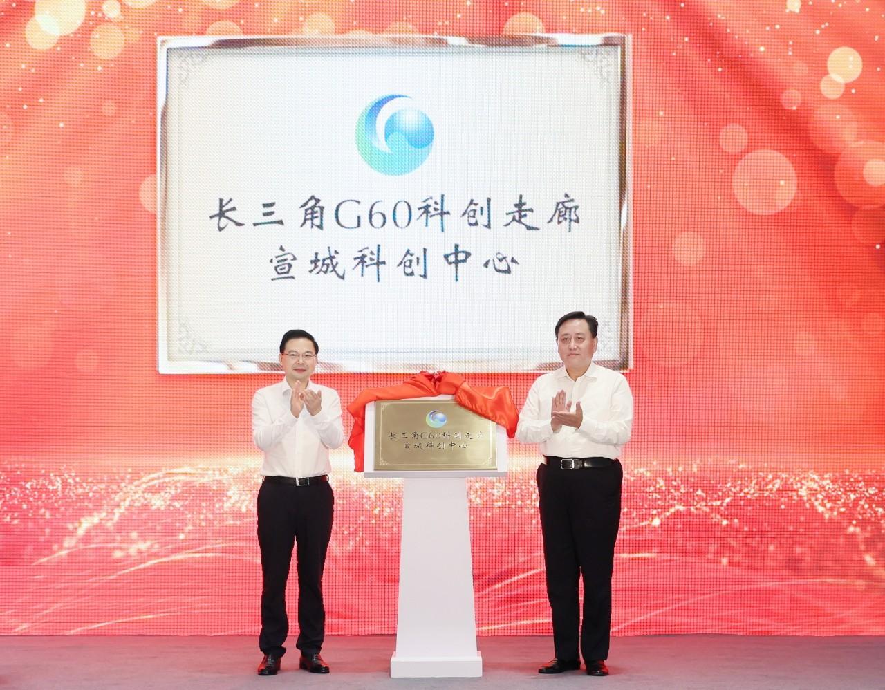 9月22日下午,长三角G60科创走廊宣城科创中心揭牌暨创新要素对接会在松江举办。国家推进G60科创走廊建设专责小组副组长、长三角G60科创走廊联席会议执行主席、松江区委书记程向民,宣城市委书记李中出席并讲话。松江区委副书记、区长王靖出席,宣城市委副书记、市长何淳宽主持。