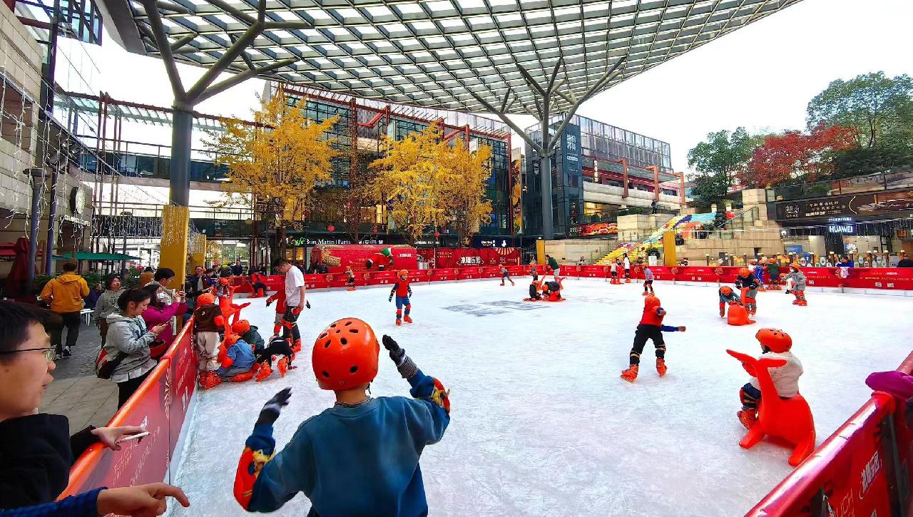 这些建在商场广场、露天或半露天中庭等醒目处且拥有景观加成的户外季节性冰场,对滑冰爱好者和路人客流拥有更强的吸引力,也起到了为商场引流的作用。