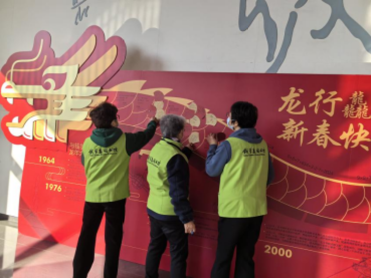 志愿者们在便签纸写下龙年的新年祝福,贴上了属于自己独一无二的“龙鳞”。