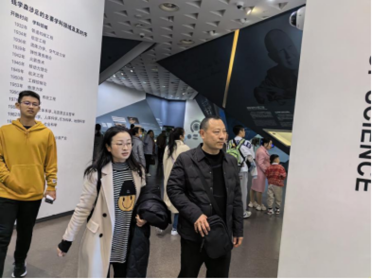 我发现,无论是散客还是团队,这两天进馆参观的大多是家长带着孩子。许多家庭安排了参观交大校园与钱学森图书馆组合。一对夫妻说,为让读初一的女儿开开眼界,带她参观了交大校园后来馆,女儿说将来想考交大。不过许多观众说没有能够同时预约到进交大参观,感觉非常遗憾,询问有什么办法能够如愿。我问一位高二男生观后感,发现因为错过了听讲解他所得甚少,就跟他聊起了我们的镇馆之宝背后的故事,四个展厅的看点,以及钱老一生中五次重要的选择。他目不转睛地听我讲,我感觉很有成就感。还有一位观众说,本想初一就过来,从网上看到初一不开门,所以初三一早就来了。……