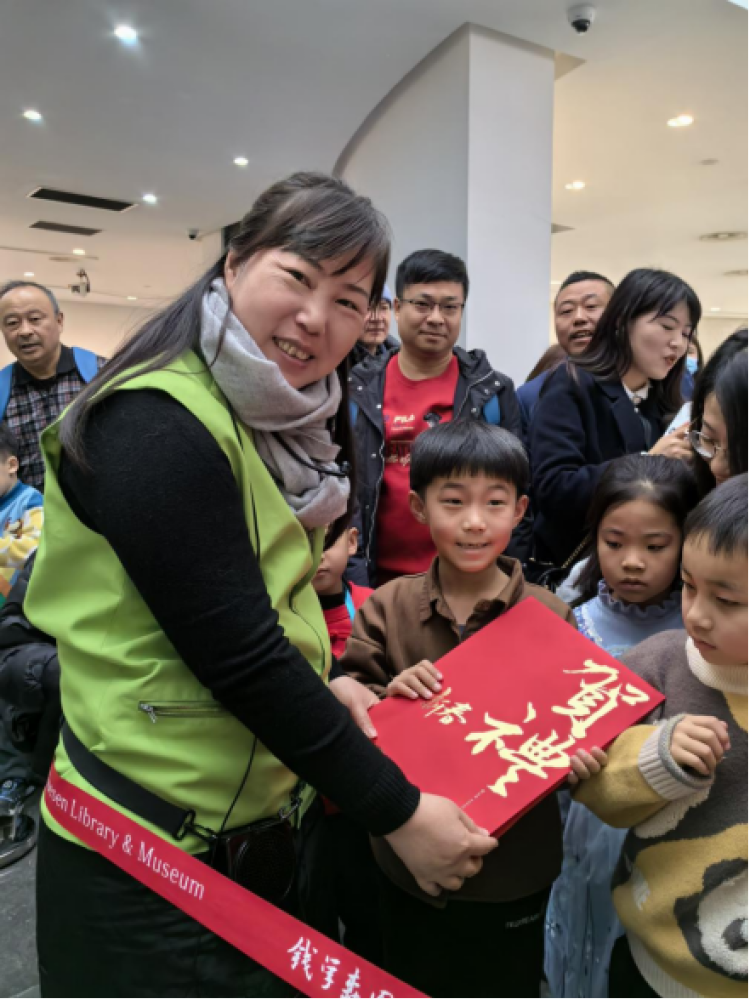 大年初四全天,我的岗位在三楼。讲解结束后,讲解员将观众带到三楼,向他们提出问题,最先回答正确的观众也获得了龙年新春盲盒礼包。