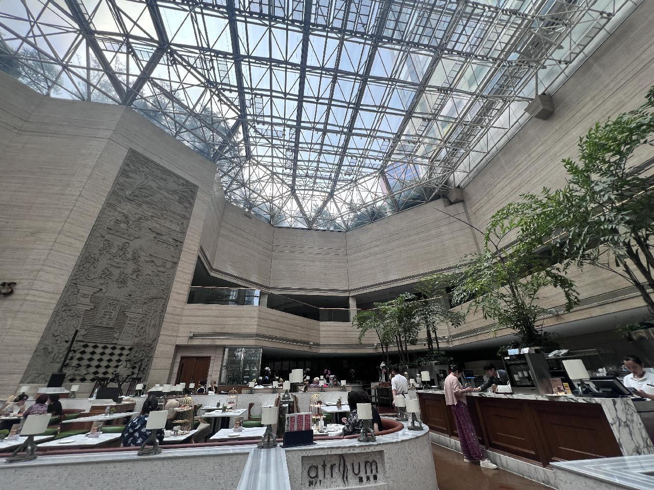 在这座前身拥有上海首家五星级酒店光环的地标建筑里,如今依然留存着许多经典之处,如深受上海爷叔阿姨喜爱的一层连天阁餐厅,巨型的透明玻璃穹顶带来的自然采光,与环绕四周的小桥、流水、绿植,还有经典三层式的英式下午茶,氛围和仪式感满分。