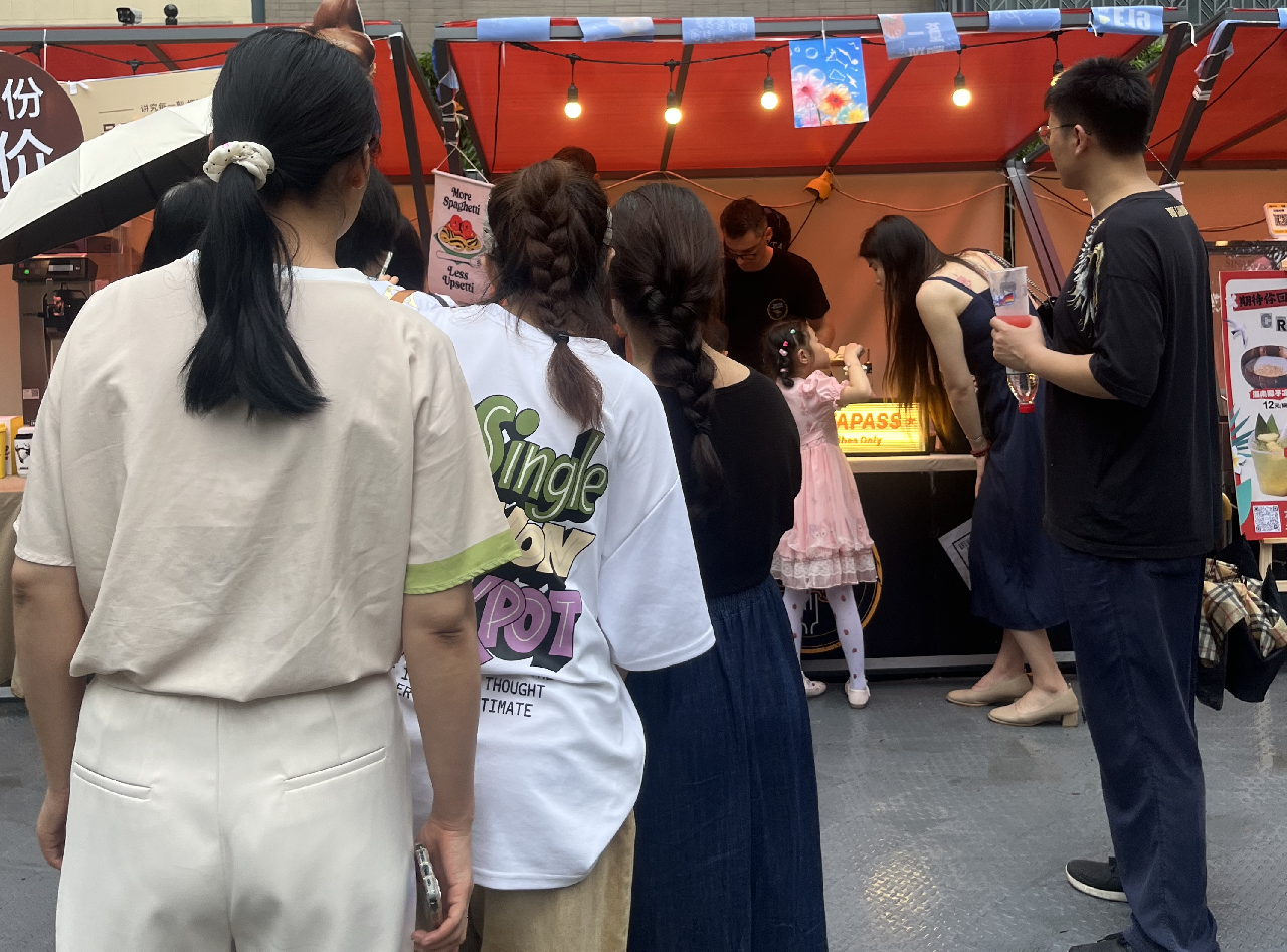经过4次摆摊,主厨Dan已经熟能生巧,出餐速度大大提高,因为口味好、颜值高等等因素,Joyce的摊位前甚至一度排了长队。