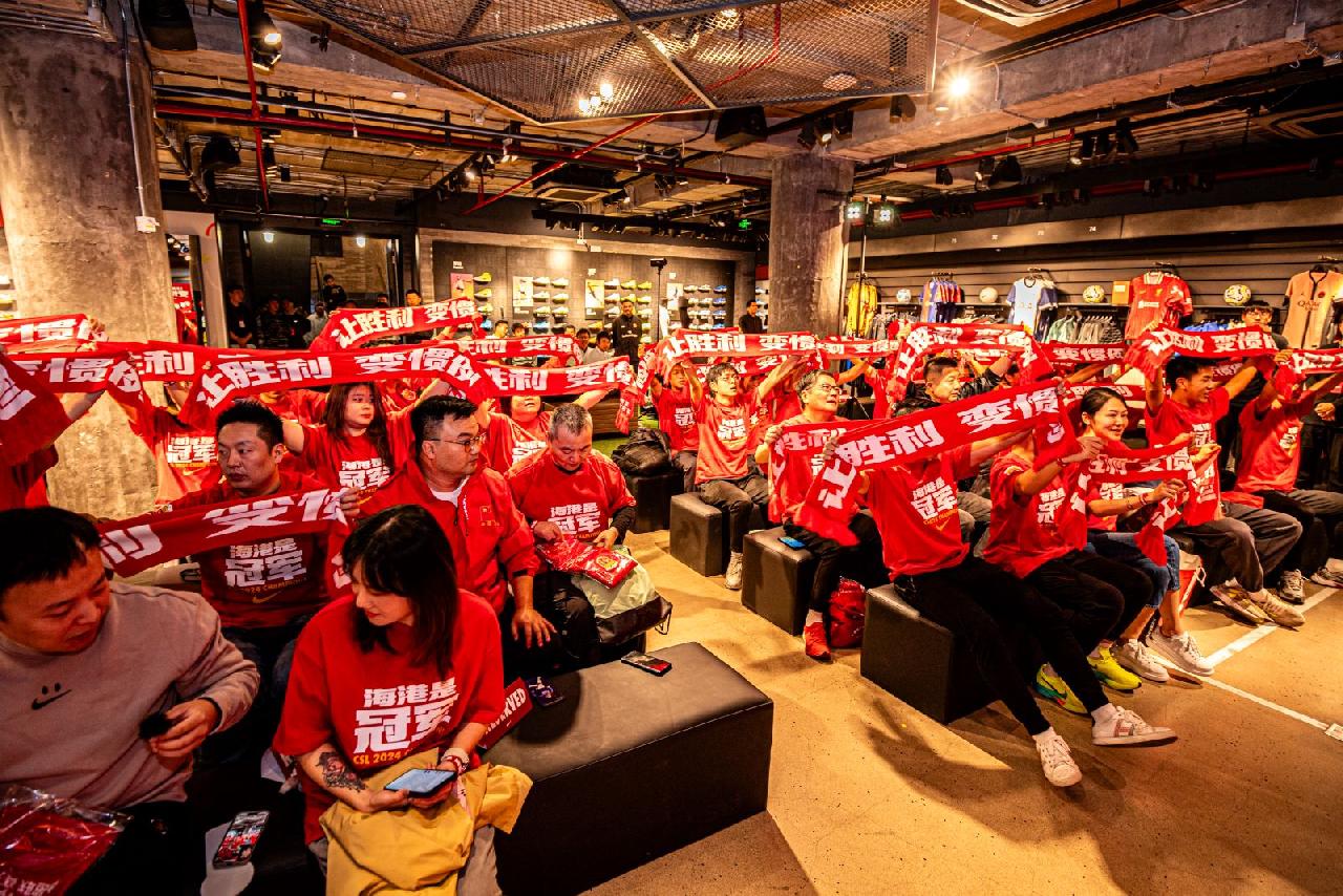 11月6日晚,武磊、张琳芃、颜骏凌与教练于海一起做客位于淮海路的耐克品牌体验店,这里既是庆祝球队夺得中超联赛冠军的庆胜会现场,还是三位夺冠功臣走到球迷中间,与数十位球迷们共同分享夺冠体验的现场。中超联赛冠军奖杯火神杯也一同亮相,为现场气氛增色。