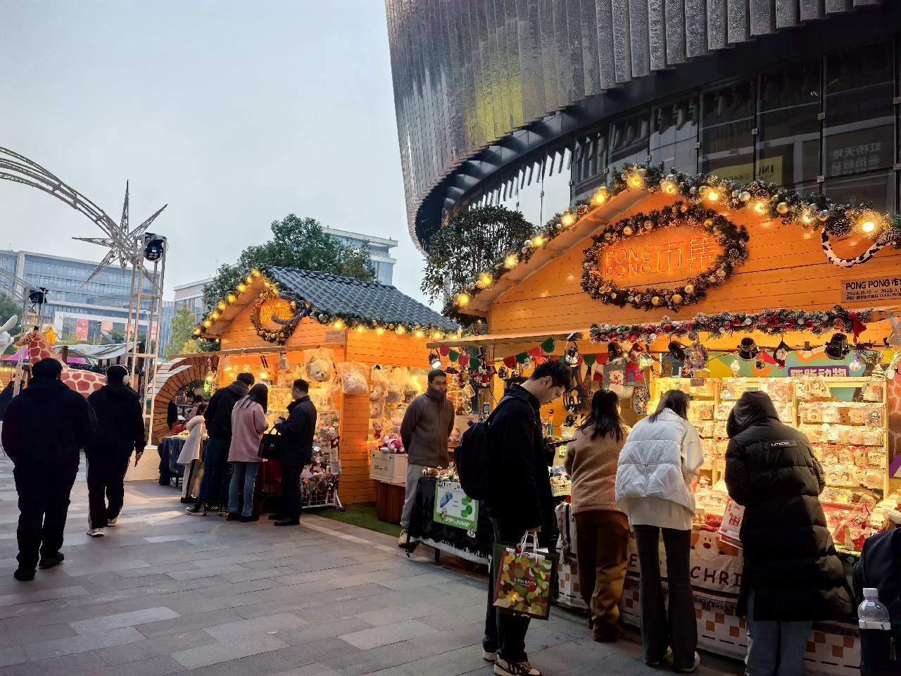“建议大家可以4点钟左右到,然后吃个晚饭,就会亮灯了,夜里的市集灯光更加璀璨夺目,整个市集的周期很长,而且每周都有不一样的体验活动,可以慢慢安排。”打卡过市集的小婷开始分享起攻略,她也向身边的朋友极力推荐,“如果说上海有个冬日市集打卡清单,今年的PONGPONG市集绝对在上面,很适合闺蜜们一起去拍照,或者带着孩子去拍亲子照,看到好几拨节日写真的在那儿取景。”