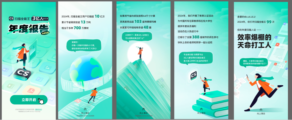 临近年关,不少职场人士纷纷在社交媒体上分享这一年来“打怪升级”的成长历程,其中,智能高效的AI工具凭借着卓越的“工作表现”,获得了各位打工人的青睐。近期,合合信息旗下扫描全能王APP发布《年度扫描报告》(简称“报告”),通过趣味互动的方式回顾2024年扫描全能王陪伴用户走过的时光。